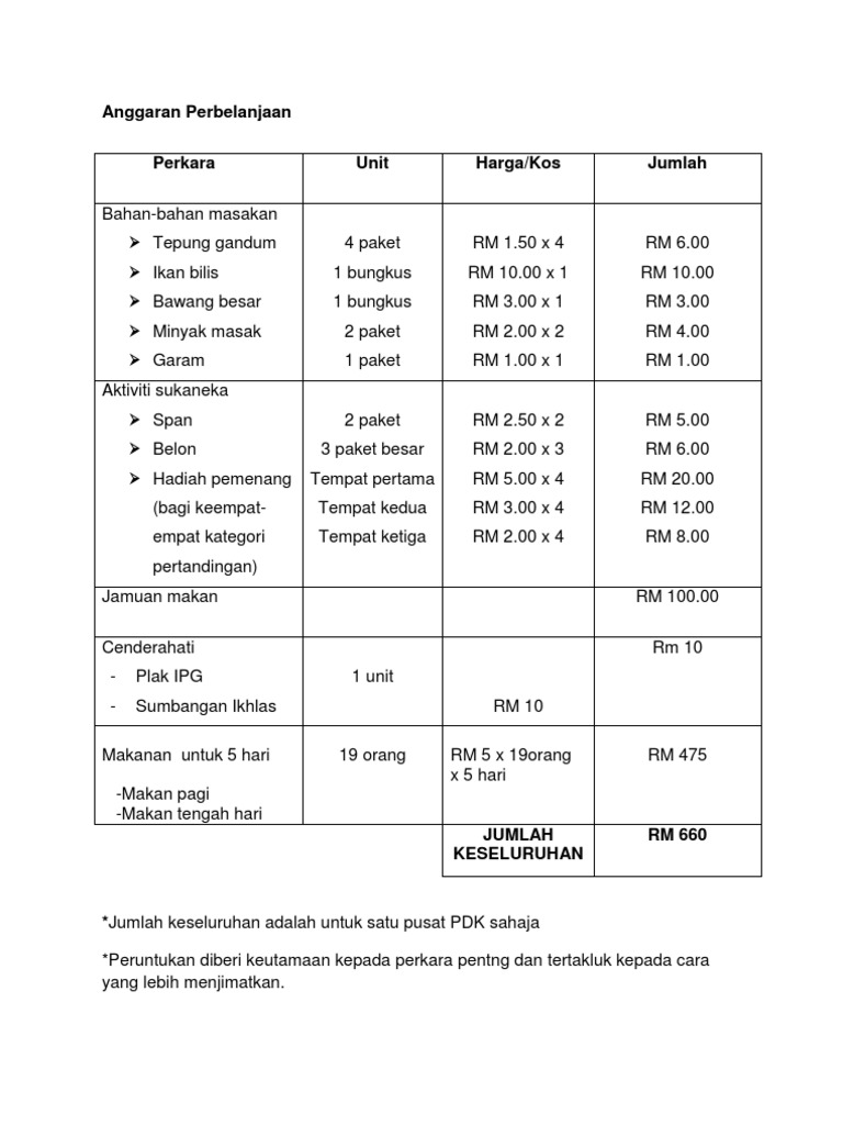 Anggaran Belanja Pdk Pdf